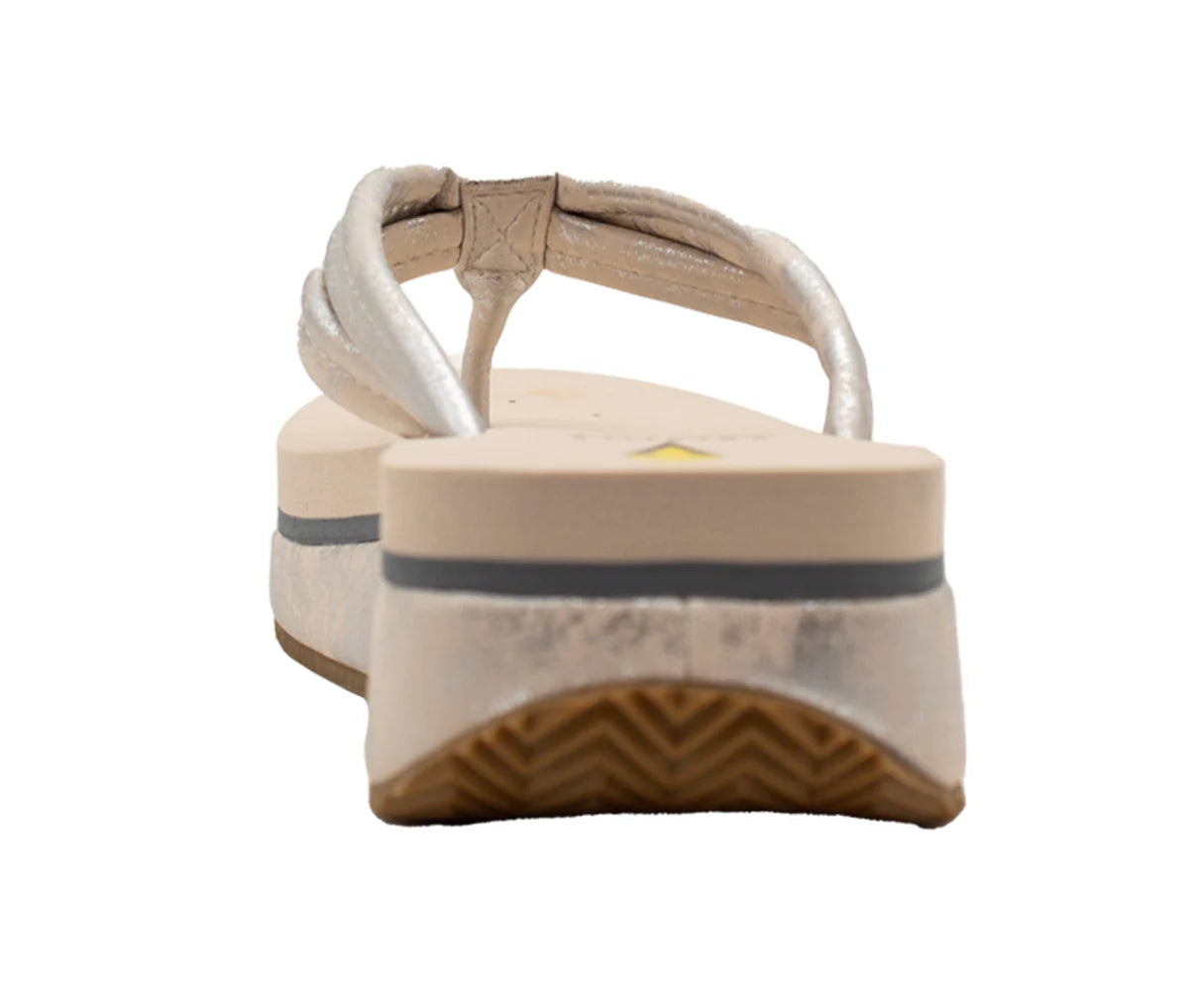 Shine with effortless style in the Stargazer sandal by Volatile Footwear. Designed for both comfort and everyday versatility, this sandal features metallic faux-leather padded straps with detailed stitching for a subtle, eye-catching look. The cushioned self-lining and signature ultra-comfort EVA insole provide soft support with every step, while the lightweight 1.25-inch wedge and durable rubber traction outsole offer stability and all-day wearability. Perfect for pairing with jeans, shorts, or a summer dress, the Stargazer sandal blends casual style with reliable comfort.